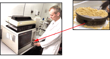 Ces échantillons sont analysés par le laboratoire de la meunerie ou par un laboratoire indépendant. Le laboratoire est une installation essentielle afin d'assurer la qualité des matières premières et des produits finis. Le laboratoire peut être équipé de plusieurs appareils dont des balances précises, des étuves, des broyeurs et des microscopes. On y retrouve également tous les autres matériaux nécessaires pour faire l'analyse des ingrédients et des aliments tels que la verrerie (béchers, éprouvettes,...) et les produits chimiques. Certaines meuneries sont aussi équipées d'un ou plusieurs appareils d'analyse par infrarouge (NIRS). L'utilisation de ce type d'appareil en usine constitue un contrôle ultime de la qualité et ce ne sont pas toutes les meuneries qui en sont équipées. Le niveau de contrôle de la qualité varie selon les usines. |