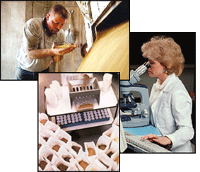 De la réception des ingrédients jusqu'à l'expédition des aliments, des échantillons peuvent être prélevés pour vérifier différentes caractéristiques en laboratoire. Selon les pratiques de la meunerie, et selon les ingrédients ou les produits concernés, tous les lots d'ingrédients ou une fraction de ceux-ci (ex: 1/4 ou 1/10) sont échantillonnés. |