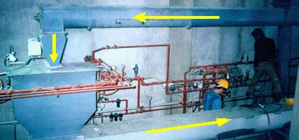 Suite au refroidissement et au tamisage, les granulés sont acheminés par une vis au système d'injection de gras. Les granulés passent à travers un ensemble de jets. Le système d'injection projette le gras chaud sur les granulés. Le gras se distribue uniformément sur la surface des granulés et pénètre dans ceux-ci. Par la suite, les granulés peuvent être expédiés au poste d'ensachage, à la station de vrac ou utilisés pour la fabrication des aliments multiparticules.