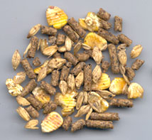 aliments multiparticules. Ceux-ci sont fabriqués à partir d'un mélange d'aliments granulés, d'ingrédients floconnés, d'ingrédients