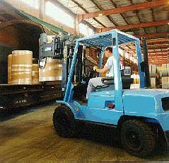 Les barils sont transportés sur des palettes ou à l'aide d'un chariot élévateur spécialisé jusqu'au lieu de déchargement. Les ingrédients peuvent être versés dans des mini-silos ou des bacs. Ils peuvent aussi être pris directement dans les barils à l'aide d'une petite pelle métallique.
